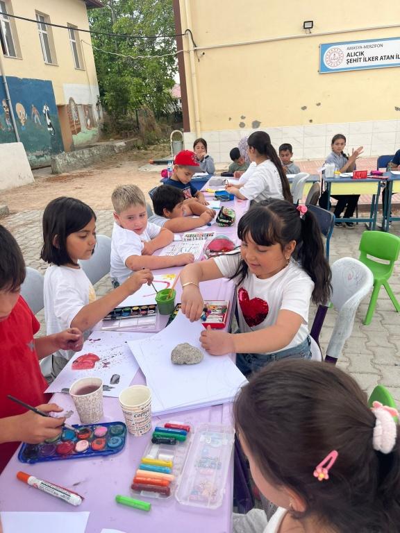Farklı tekniklerle yaptıkları resimlerini daha sonra kendi aralarında sergilediler.